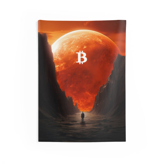 Orange Moon Rising Wall Tapestry