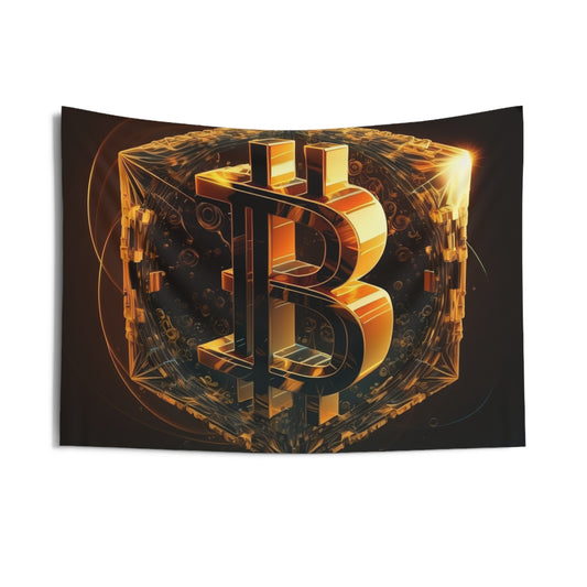 4th Golden Cube of Bitcoin Wall Tapestry